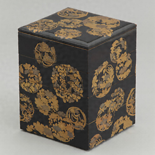 黒漆塗花枝円文蒔絵 色絵籠目貼付龍文香炉