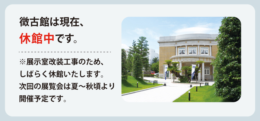 【徴古館 展示室】 ※展覧会期間中のみ開館(スケジュールをご確認ください) 2026年2月14日(土)~3月15日(日) 10:00~17:00(入場は16:30まで) ※上記会期中は休館日なし
