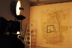 徴古館が市民団体と連携して進めている「御城下絵図を読み解く―幕末さが城下まちづくり構想―」(文化庁支援事業)の絵図解読作業に先立ち、20点ほどの絵図の写真撮影を2日間かけて一斉に行いました。正保、慶安、承応など江戸前期の各時期に作成された絵図は2m×3mもある大画面ですが、細部まで解読できるように部分図も撮影しました。 今後はここで得られたポジフィルムや画像データをもとにパネルを作成した上で解読作業を順次進め、江戸時代の佐賀のまちを解明していく計画です。 |