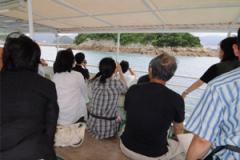 徴古館が市民団体と共同で進めている文化庁支援事業「御城下絵図を読み解く(幕末さがまちづくり構想)」の一環で、長崎における幕末佐賀藩の動きを探る見学会を開催しました。 江戸時代、佐賀藩は福岡藩と一年交替で長崎警備を勤めていましたが、佐賀藩担当年の文化5年(1808)におきたフェートン号事件には特に大きな衝撃を受け、長崎警備の重要性を強く認識します。 今回の見学会では、遊覧船で長崎湾内を廻りながらフェートン号の停泊地と思われる場所や佐賀藩が築いた四郎島台場跡などを確認しました(左写真は船上から見る四郎島)。さらに橘湾に面した矢上陣屋跡や360°の円形台場が残る経ヶ岳台場跡などへも足を延ばし、佐賀藩の国防意識の高さを再認識できた有意義な一日でした。 |