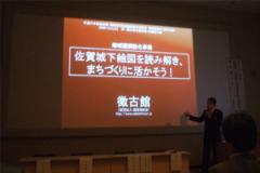文化庁「平成21年度美術館・博物館活動基盤整備支援事業」の事業報告会が、東京上野の国立西洋美術館で開かれました。これは、今年度この支援事業に採択された全国の館による活動報告会で、当館は市民団体と連携して6月から取り組んできた「御城下絵図を読み解き、まちづくりに活かそう!」の活動内容を報告しました。絵図パネルなど読み解き作業の基礎となる素材の作製、市民団体との打ち合わせ、城下絵図の展覧会や城下探訪会の開催、そして事業を通じて感じられた地元の方々の城下町佐賀に対する関心の高さを報告しました。収蔵資料を活かして歴史啓発に努め、地元と連携した点が、地域博物館として一定の評価を受けました。 |