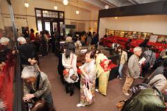 10周年を迎えた佐賀城下ひなまつり。125年ぶりとなる「加賀前田家からの里帰り」展の効果でしょうか、昨年に比べると毎日多くの人出で賑わっています。さらに今年は、これまで非公開だった徴古館2階フロアを改修し、各種イベントの場として活用しています。3月22日までの毎週土曜と日曜に、お煎茶やお抹茶の接待、折り紙体験、講演会など盛りだくさんに開催しており、特に折り紙体験は「参加型のひなまつり」としてお子様にもたいへん好評です。1階展示室でおひなさまを鑑賞されたあとは、ぜひ2階へ足をお運びいただき、おくつろぎください。 |