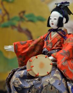 本年は朝香宮紀久子様(13代鍋島直泰夫人)の初節句である明治45年(1912)から数えて100年目にあたることから、本作品を始め、同じく初節句のお祝いに祖父である明治天皇より拝領した御台人形など、天皇家より御下賜の御人形を「鍋島家の雛祭り」展(2012年2月18日(土)~3月31日(土))で特別に公開しました。