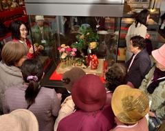 また平成24年が、朝香宮鳩彦王第一王女紀久子様(13代鍋島直泰夫人)の初節句から100年という慶ばしい節目の年にあたったのを機に、天皇家より拝領した御台人形 三基すべて(山姥、鶴亀松竹菊庭雛鶏遊御人形、花車引人形)を一堂に公開しました。