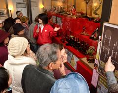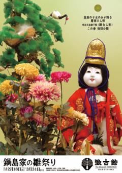 明治から昭和初期にかけて鍋島家歴代夫人が愛しんだおひなさまを一堂に展示した毎年春恒例の「鍋島家の雛祭り」展。佐賀藩36万石の藩主だった鍋島家は、明治維新後、大名から侯爵となりましたが、往時の雛祭りを再現した大雛壇は、大名家・侯爵家にふさわしい豪華さと品格を兼ね備えています。