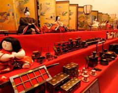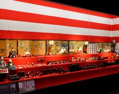 徴古館では毎年桃の節句の季節に『鍋島家の雛祭り』と題し、鍋島家に伝来したおひなさまを展示しています。11代直大・12代直映・13代直泰各夫人所用の雛人形・雛道具が中心となり、これらは初節句の折に誂えられたもの、鍋島家に嫁した後に新調されたもの、御祝いの節に拝領したものなどいずれも由来が明らかで、幕末から明治・大正・昭和初期に至る大名家・侯爵家にふさわしい豪華さと品格を兼ね備えたものばかりです。