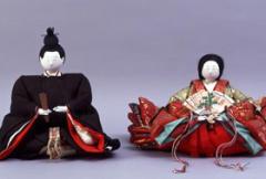 明治時代前期 直大・栄子夫妻所用の雛人形を中心に飾り付ける。座敷一杯に幕を張り7メートルはあろうかと思われる雛段には、歴代の雛人形、御所人形、雛道具類を所狭しと並べており、このような飾り方が宮家や華族家の通例であったと |