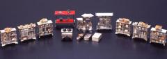 旅道具(女乗物・行器・唐櫃・貝桶・茶弁当・長持他)。茶弁当には唐草、挟箱には菊唐草、女乗物には松竹梅、他は全て牡丹唐草を、そして各金具部を線刻。底面に赤フェルト地の跡があることから、もとは台に付着していたのだろう。