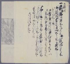 写真は花杏葉紋をつけた絽の振袖(夏物単衣)の注文書。未年は弘化4年(1847)にあたる。7月初めまでに出来上がるようにと6月19日に注文している。10日余りで完成するには、すでに生地があり、仕立てと紋入れの作業だけだろうか。この年3月10日に鍋島直正最初の夫人である盛姫が亡くなり、11月2日には田安徳川家の筆姫との縁組が正式に許可されており、早い段階で話は進んでいたものと思われる。
