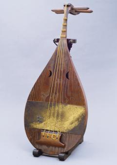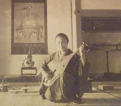侯爵鍋島直大(なおひろ)公は宮中儀礼や雅楽を掌る式部長官をつとめ、栄子(ながこ)夫人も直大公とともに華族らと雅楽サークル絲竹会(しちくかい)をおこすなど雅楽に傾倒された。栄子夫人は残された古写真などから筝や琵琶を嗜んだことが知られていたが、楽器自体は伝わっていなかった。このたび徴古館に寄贈された本品は、附属する青漆塗杏葉紋付爪箱に栄子夫人の所持品であることを示す「梅印」と記されている。このことから栄子夫人が所持された琵琶であることがわかる貴重な遺品である。