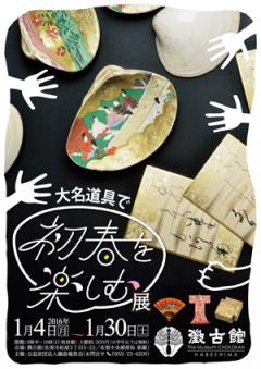 平成28年1月4日(月) ~ 1月30日(土)佐賀藩主・侯爵鍋島家には江戸時代の大名道具として、また皇族と侯爵鍋島家の御縁による品々として、楽器や能装束、碁盤・将棋盤・双六盤などの遊戯具、香りを楽しむ香道具などが伝えられています。本展ではこうした「楽しむ」御道具や、おめでたい意匠、華やかな装飾を凝らした御道具を、新年の干支である申をモチーフにした愛らしい工芸品などとともにご紹介しました。