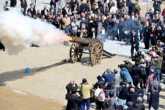 大正2年(1913)の直正公銅像除幕式の日は小雨でした。それから104年を経た今日。快晴のもと15代鍋島直晶様はじめ来賓や関係者、地元小学生たちの手により再建された銅像の幕が除かれ、戦時中の金属供出から73年ぶりに英姿が現れました。総高8m超の巨像が建つ場所は、直正公が藩主就任直後の5年間を過ごした佐賀城二の丸跡。藩内をまとめる上で苦心したのが特にこの時期。一丸となり偉業を成し遂げた幕末佐賀藩の象徴として、そのリーダーが佐賀のまちを見守り続けることでしょう。