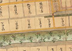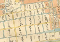 ¥2,500 元文5年(1740)の城下絵図。現存7種のうち絵画表現が最も充実。居住者名約1,000件を活字化した翻刻図つき。 |