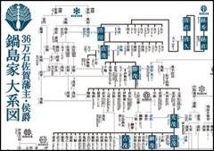 ¥1,000 佐賀藩主・侯爵鍋島家を中心に、縁戚関係のある諸家を示した系図。皇室・皇族をはじめ、徳川将軍家や他大名家、公家との関係などもよく分かる1枚。 |