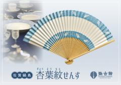 ¥4,500 扇面の模様は、侯爵鍋島家の邸宅で用いられた「染付唐草杏葉紋散洋食器」(大正~昭和時代/香蘭社製)の図柄をもとにアレンジしたもので、鍋島家の家紋・杏葉紋(ぎょうようもん)と唐草文様を組み合わせた特別なデザインです。 |