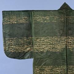 萌黄地水輪露芝模様摺箔