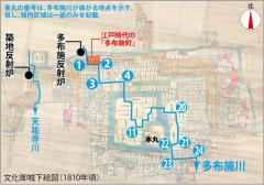 城下に生活用水をもたらした川が多布施川(たふせがわ)です。初代藩主鍋島勝茂公の時代、治水事業に長けた成富兵庫茂安が設けた石井樋によって嘉瀬川から分水された川です。農村地帯に水を配り、城下の暮らしを支え、さらに南部の農村部を潤し、やがて有明海に注ぎます。 広範囲に水を配るため、多布施川の流路は佐賀城下だけで24回も曲がっています。飲料水にも利用される水を各屋敷に届ける支流や水路が網の目のように発達しており、ゴミを捨てない、幅を狭めないなどの規定がありました(※1)。毎年春、石井樋を堰き止め川干を行い、水路の底に溜まった土砂やゴミを浚う作業は住民の義務でした(※2)。協力しない場合、武士は給与から天引きされる罰則規定もあるなど(※3)、水質の保全に気が配られていました。石井樋から城下入口までの多布施川の長さは約6km。この区間の川沿いには、多布施川河畔公園として緑地帯が整備されており、四季を通じて散策やジョギングのコース、憩いの場として楽しむことができます。 |