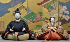 次郎左衛門雛とは、江戸時代中期に雛屋次郎左衛門(ひなやじろうざえもん)という人形師が創始したことからこの名があり、団子のような丸顔に引目鉤鼻(ひめかぎはな)という、源氏物語絵巻に描かれるような面貌が特徴的である。雛の本流として、流行に左右されず公家や大名家に好まれたという。