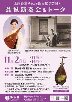薩摩琵琶奏者・北原香菜子さんの演奏と当館学芸員とのトークで、