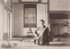 (左)琵琶を爪弾く栄子夫人(於 永田町鍋島邸)