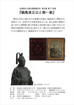 幕末の名君と謳われた10代藩主・鍋島直正に関係する資料のうち、安政6年(1859)の肖像写真をはじめ、直正直筆の書画や、娘へ宛てた書簡類、徳川将軍家と田安徳川家から嫁いだ夫人の葵紋付調度類や手細工品、親から子へ譲られた雅楽器類や子供たちの遺愛品など、鍋島家ゆかりの品々を展示しました。