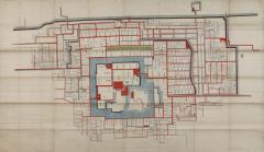 佐賀城および城下の慶長年間の様子を表した絵図。但し本図には都市計画図的性格が含まれており、名称の「御積(おつもり)」とは「(絵図のように佐賀城・城下を建設する)つもり」の意味と思われる。城内部分を見ると本丸・二之丸は堅固な石垣で囲われ、さらに石垣は三之丸から西之丸の一部にも築き廻されており、城内の隅部には五棟の多層櫓が配されている。しかしこれ以後の時期のいずれの絵図を見ても石垣は本丸の一部だけで、多層櫓も西之丸三階櫓のわずか一棟しか見当たらない。というのも、たび重なる公儀普請による財政悪化と元和元年(1615)に幕府から出された武家諸法度での居城新規造営の禁止を受け、本図に描かれた石垣や櫓の多くは実際には構築されなかったのである。