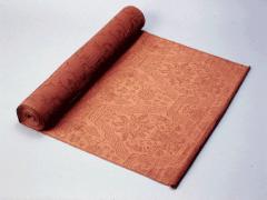 繻子織に金糸で柄を織り出す珍しい技法によって西洋風な双頭の鷲などを表しているが、菊や鳳凰などの模様があることから中国製といえる。当時マカオでポルトガル製品の写しを中国人に織らせることがあったという。初代藩主鍋島勝茂が長崎からの輸入品を入手した未使用品で、約10mもある。