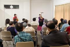 鍋島栄子夫人の楽琵琶(銘 宮島)の展示にあわせ、琵琶のイベントを開催しました。鶴田流 薩摩琵琶の奏者・北原香菜子さんにより、楽琵琶と薩摩琵琶の奏法や音色の違いのご説明のほか、琵琶の歴史や栄子夫人が詠まれた和歌を弾き語りで表現していただきました。また、和歌の時代背景、琵琶と鍋島家との関係等について当館の池田主任学芸員が解説を行い、午前・午後の計2回の公演で約50名の方にお楽しみいただきました。 |